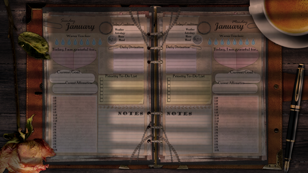 ❝In the back of the dusty library sits the ghoul with long, shady eyes. She sips her coffee, bold and fragrant and always black, and returns to the world inside her journal of scribblings and crinkled pages which keeps her mind ever at ease. The Luxe Gothique Planner Collection is a collection of customizable works of art perfect for the ghoul who wants a unique journaling experience to match her whimsically dark aesthetic. The Daily Planner Bundle is our collection of 168 A5-sized printable daily spread planner inserts for use in your daybook, all in our unique signature Luxe Gothique style.